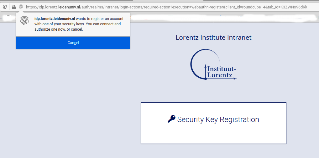 Make sure your security key is FIDO2-compatible by checking the vendor's website or obtain one from the Lorentz Institute IT Department. If you obtain a security key from the IL, you are required to return it upon termination of your contract and you are obliged to notify support@lorentz.leidenuniv.nl in case of key loss or theft. If you would like to use your private security key, notify support@lorentz.leidenuniv.nl your intention to register this device so that you can be guided through the procedure.