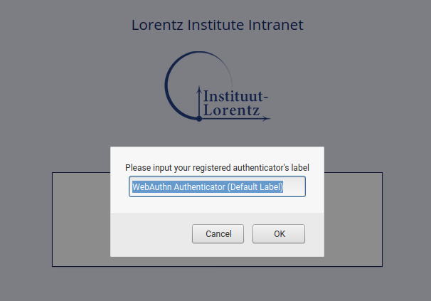 Once your security key has been successfully added, your browser will ask you to add a label if you wish (Figure 3). Click on `OK'. Your SK setup is completed.