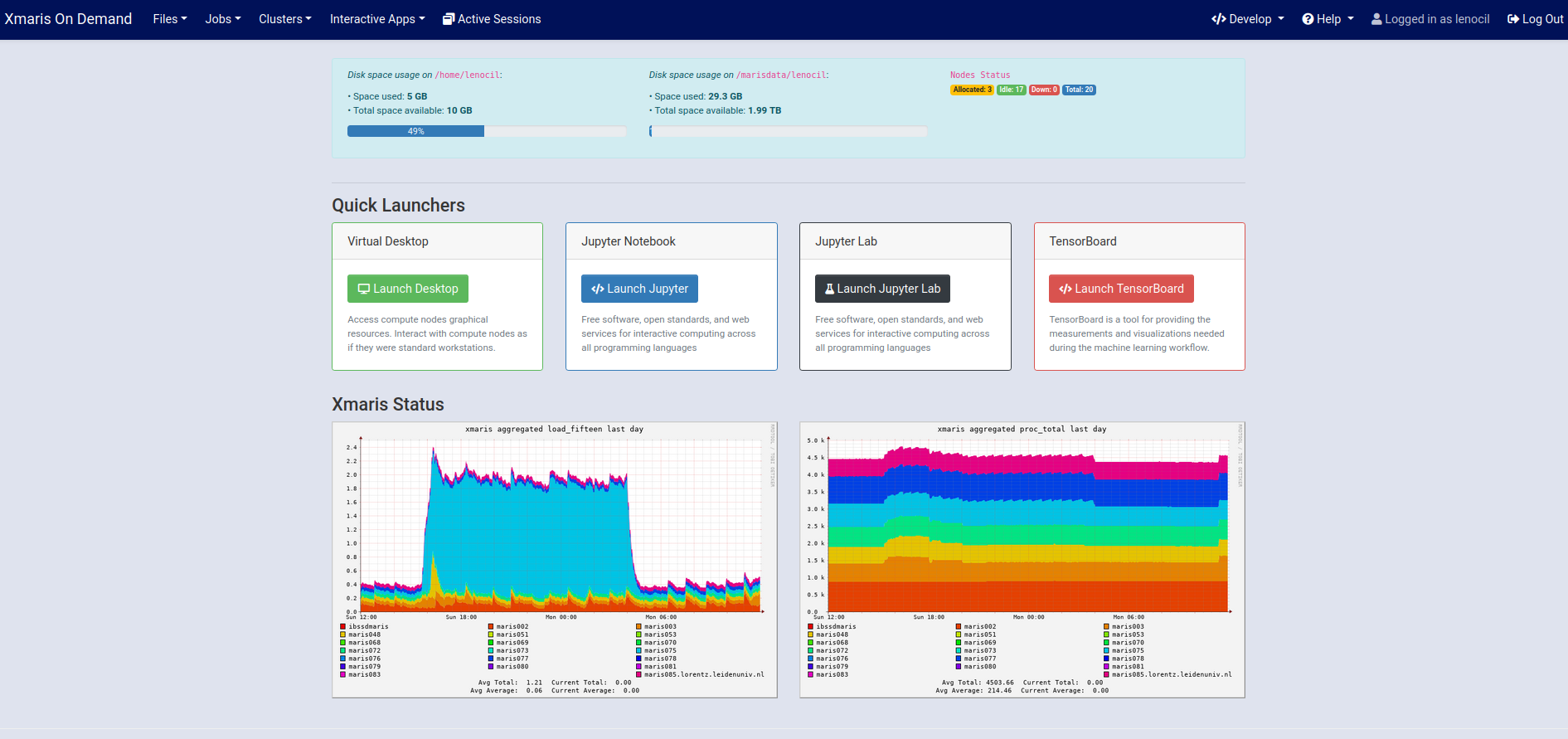 Please do not bookmark any other URL than https://xmaris.lorentz.leidenuniv.nl:4433 to connect to OpenOnDemand. Failing to do so can result in connection errors.