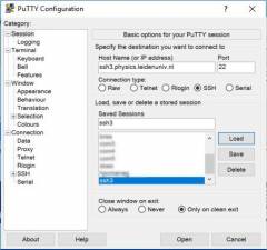 Type in the FQDN (Full Qualified Domain Name) of the server: ssh3.physics.leidenuniv.nl and use your username and password to authenticate. Click on the Logon button and you will be connected at the top level of the directory tree: